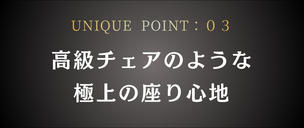 日本人の骨格に基づいた設計で、腰・背中・首の3点を隙間なく支え、理想的なS字カーブをキープします。体圧を上半身全体に分散させることで、一点に集中する負担を軽減。シートに深く身を委ねられる包容力が、あなた好みの座り心地を叶えます。