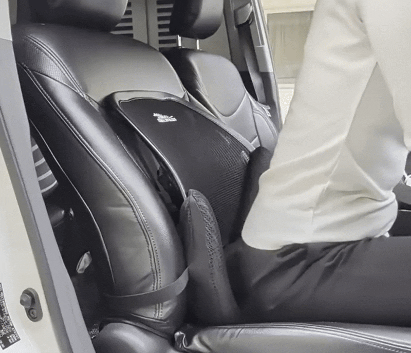 シート奥の隙間を埋め、後ろに倒れがちな骨盤をしっかりキープ。土台が安定することで背筋が自然と伸び、理想のS字ラインを無意識に維持できます。長時間座っても姿勢が崩れず、腰一点にかかる負担を分散させるため、ドライブ後も軽やかな足取りで車を降りられます。