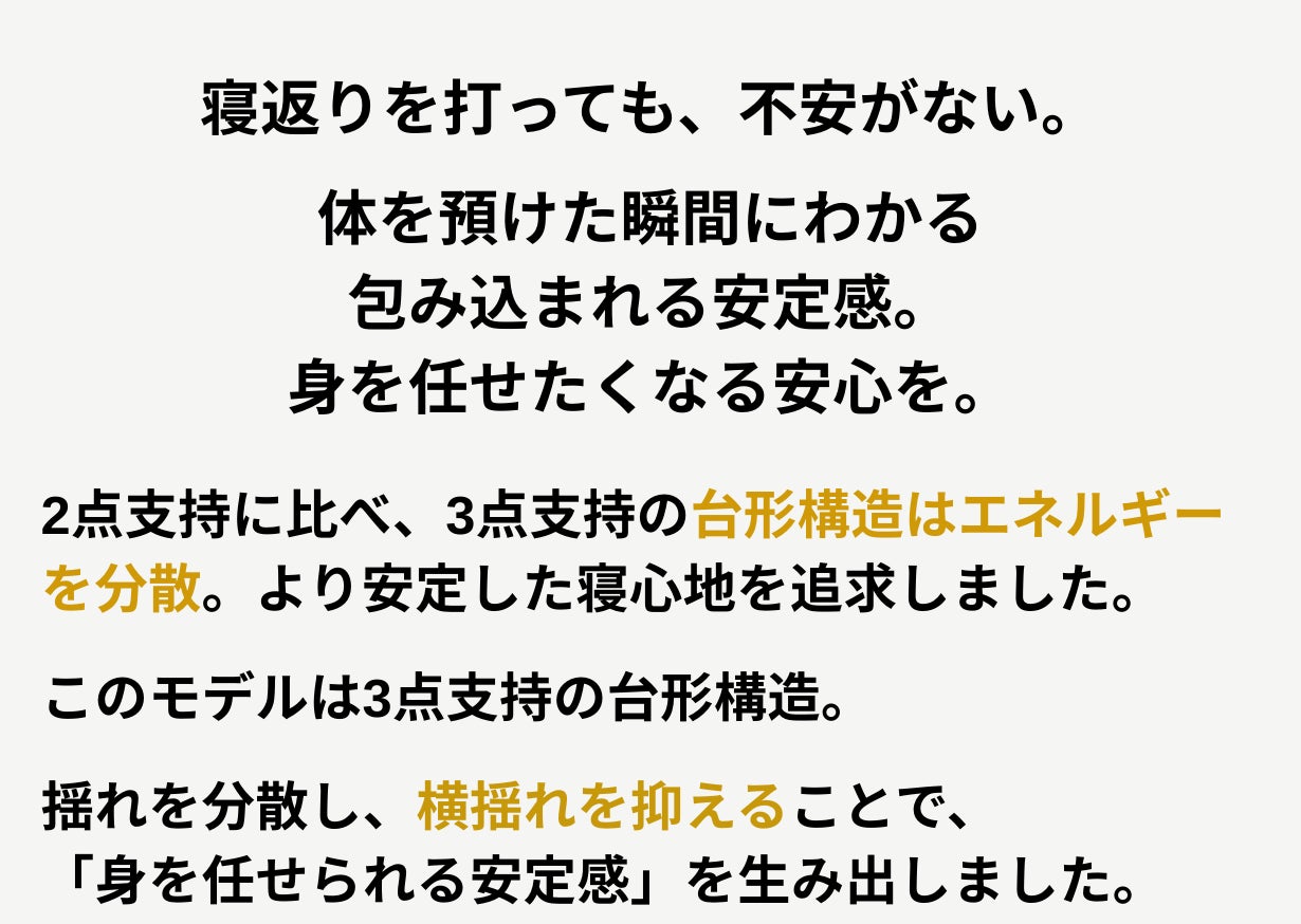2026/04/08 11:48皆さま、こんにちは。今日から数回に分けて、開発の裏側をお話しします。SOMNIA HAMMOCK CALMの台形構造、実は最初のプロトタイプは散々な出来でした。理論上はフラットになるはずの設計。しかし、実際に人が乗ると中央が沈み込み、「これ、普通のハンモックと変わらないじゃないか…」という状態。何が問題だったのか。原因は 生地のテンション設計 でした。台形の角度と生地の伸縮率のバランスが取れておらず、体重がかかった瞬間に設計通りの形状を維持できなかったのです。ここから、素材選定のやり直しが始まりました。何十種類もの生地を取り寄せ、それぞれの伸縮率・耐荷重・肌触りを検証する日々。この試行錯誤がなければ、今のSOMNIA HAMMOCK CALMは生まれていません。明日は、素材選びのこだわりについてお話しします。 もっと見る