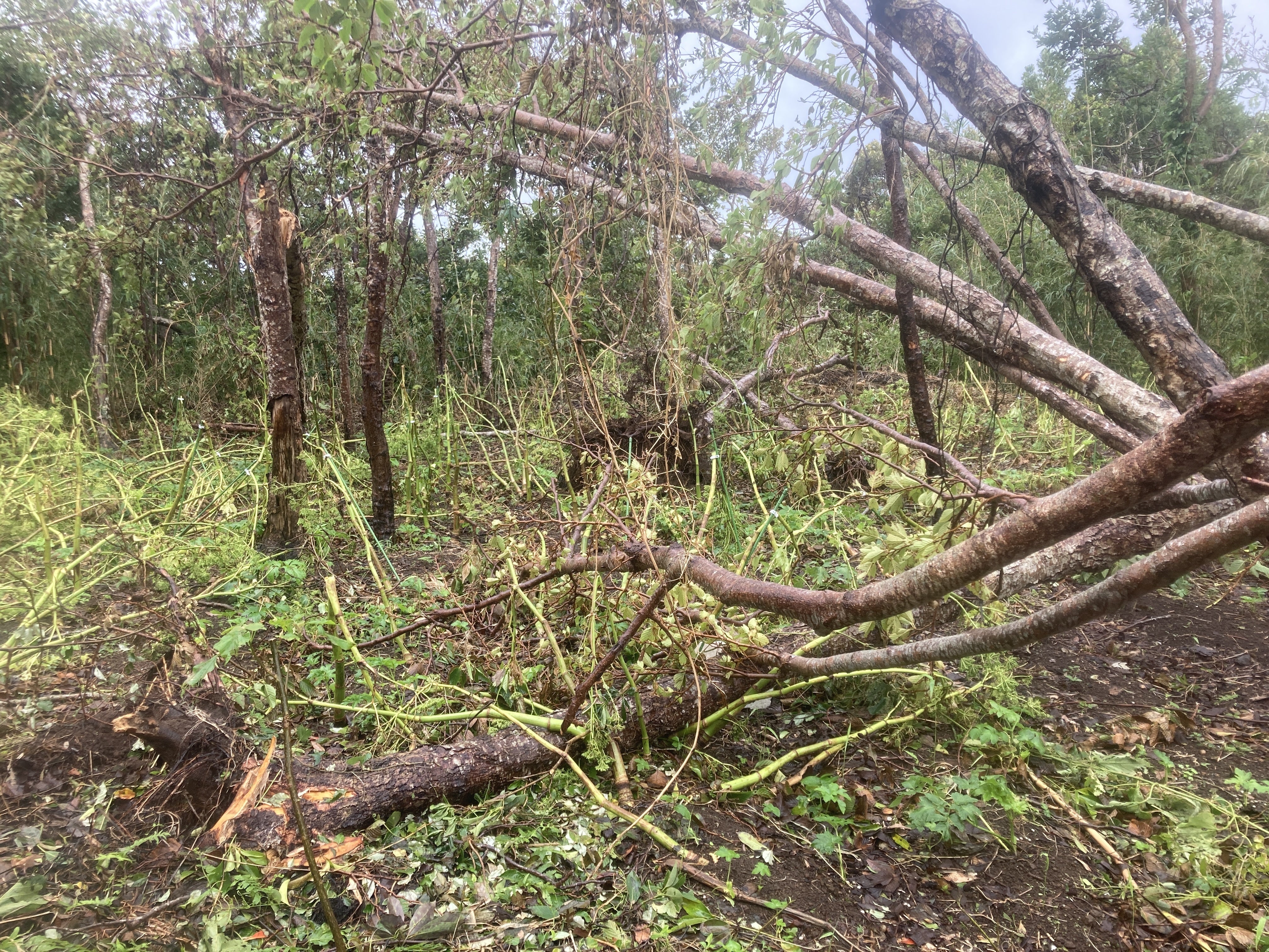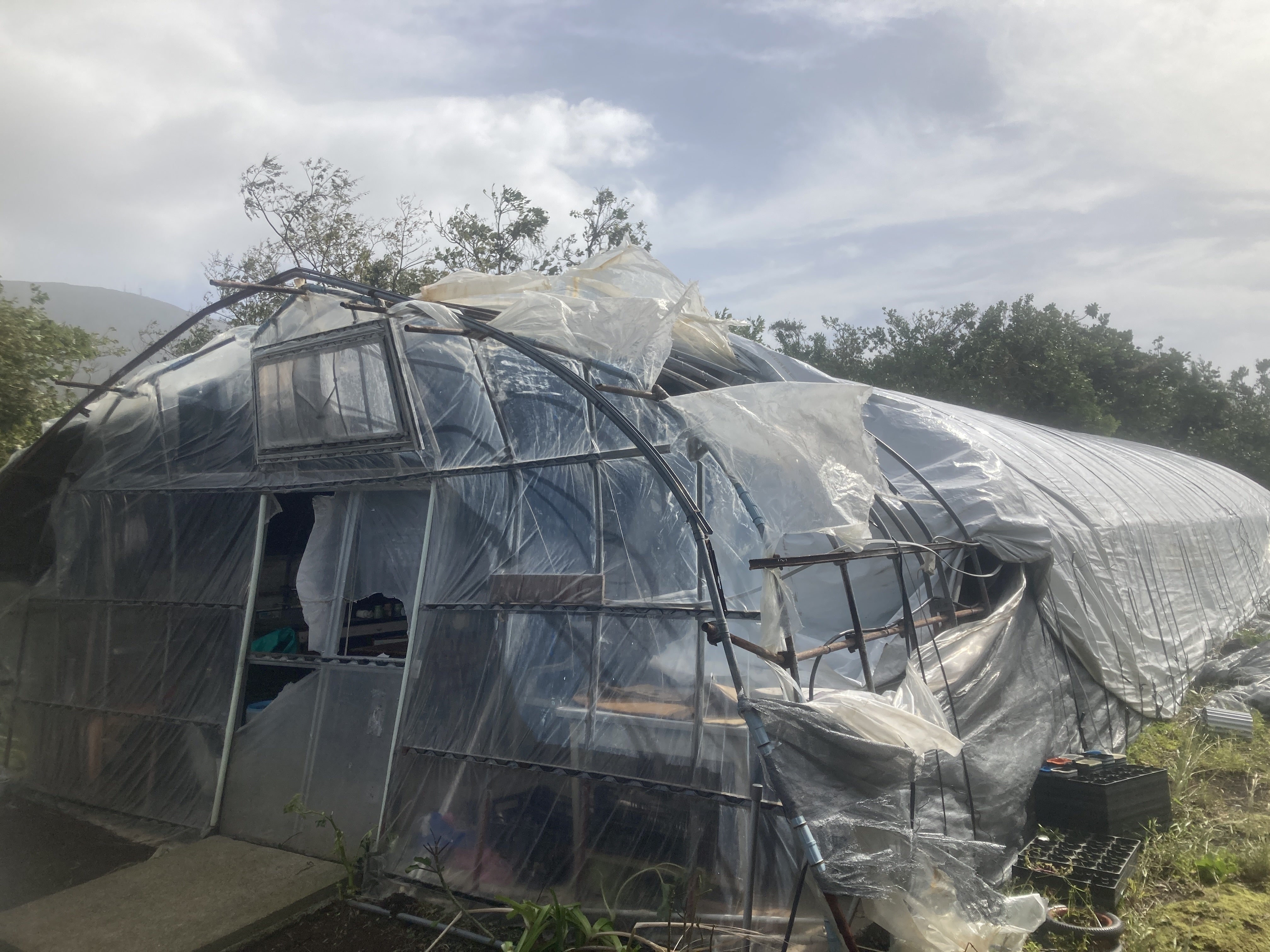 昨年10月に襲った台風で、畑の木々が倒れ、ビニールハウスも大きく壊れました。