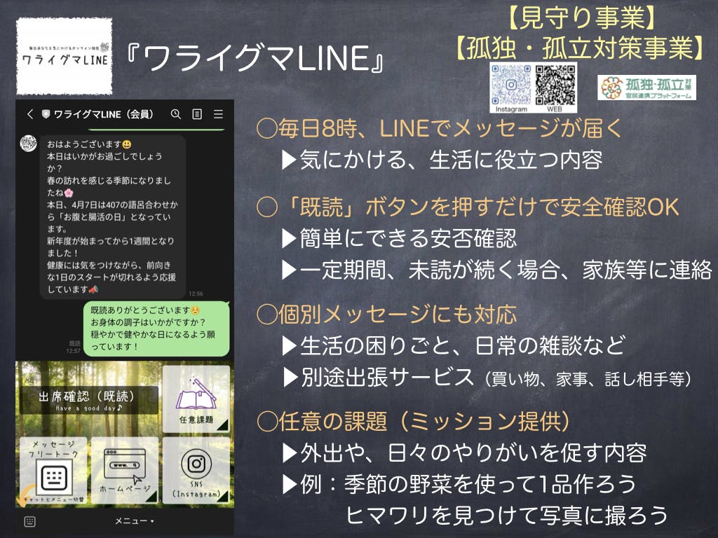 ②ワライグマLINE『世代や属性にとらわれない孤独孤立対策』