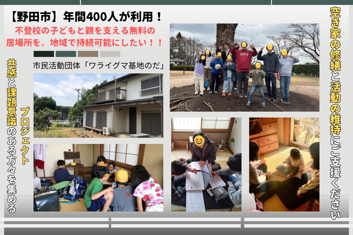 【野田市】年間400人が利用!不登校の子どもと親を支える無料の居場所を、地域で持続可能にしたい💪