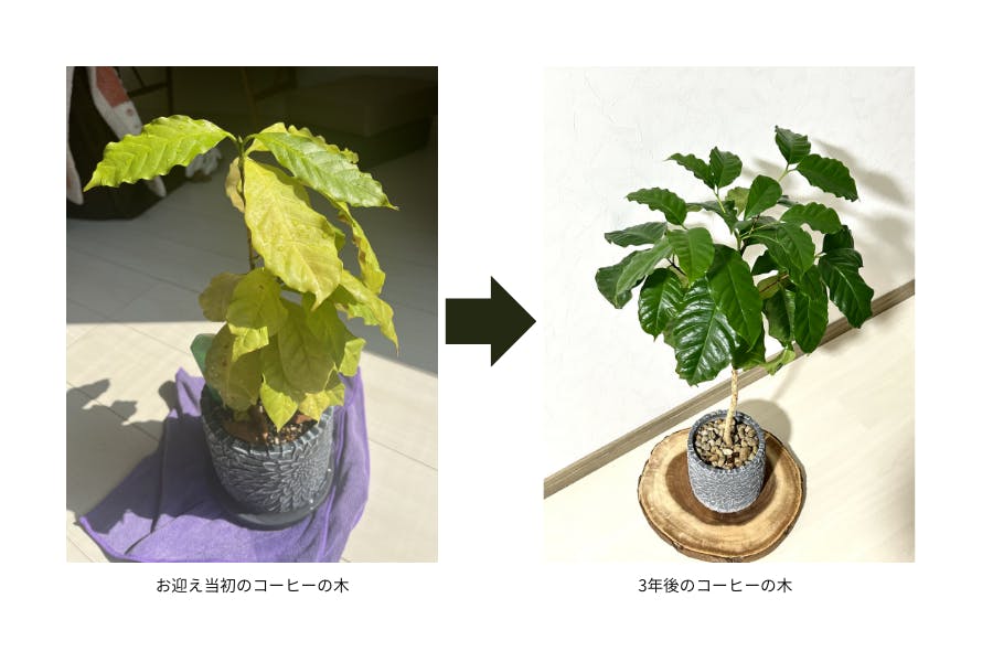 慣れない土地・家族も友人もいない状態の中、このコーヒーの木と向き合った時間は、寂しさを忘れさせてくれただけでなく、私の心を癒して支えてくれました。