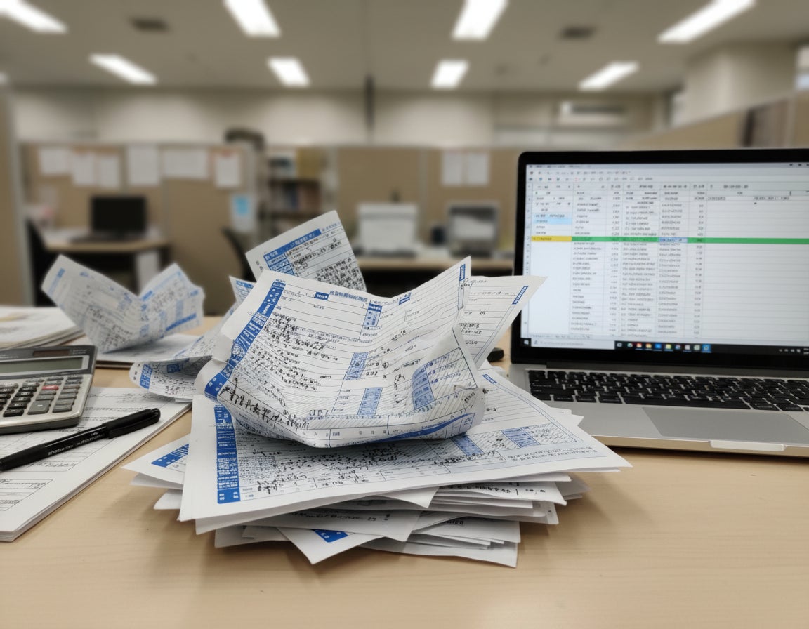 手書き伝票、Excel転記、帳簿整理、記入ミスの差し替え…。