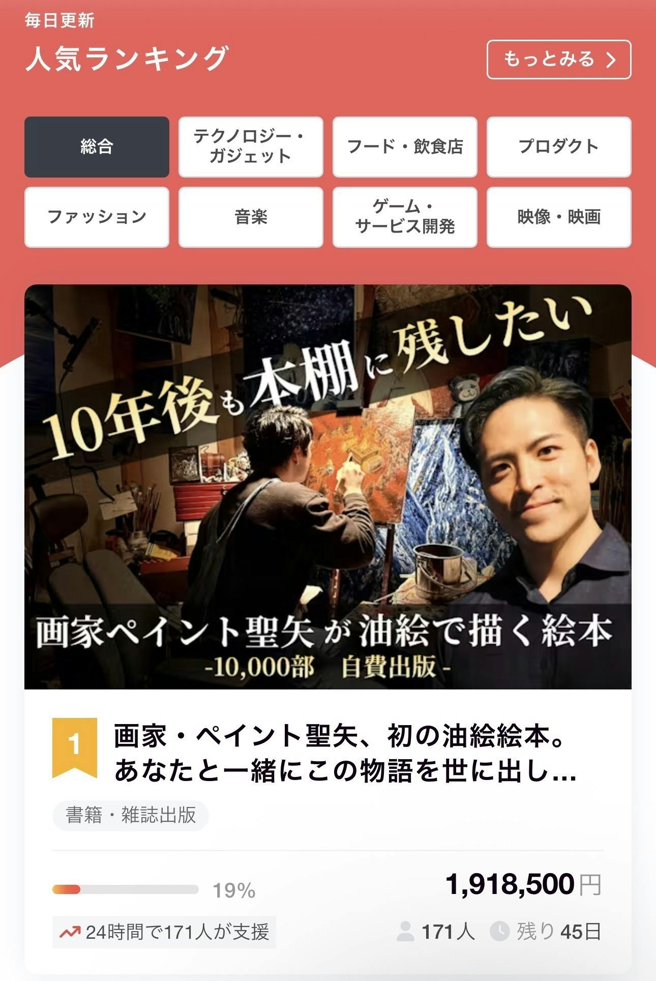 2026/03/16 13:57天才の皆さん、こんにちは!どうも!天才・ペイント聖矢です!昨日3月15日の誕生日LIVE、そしてクラウドファンディングカウントダウンLIVEにご参加いただきありがとうございました!!!総勢100名以上の方々と僕の誕生日をお祝いすることができ、非常に楽しく忘れられない誕生日になりました!ありがとうございます!↑誕生日LIVEで皆様と乾杯するペイント聖矢↑誕生日LIVEでプレゼント企画をするペイント聖矢そして、なんと…皆様の多大なる応援のおかげで…キャンプファイヤーの総合ランキング1位になりました!!!(3月16日 午前6:00頃 時点)ありがとうございます!!!これからも、絵本制作や動画制作などなどより一層頑張って参りますので、引き続き熱い応援のほどよろしくお願いいたします!!!最高だぜっ!!! もっと見る