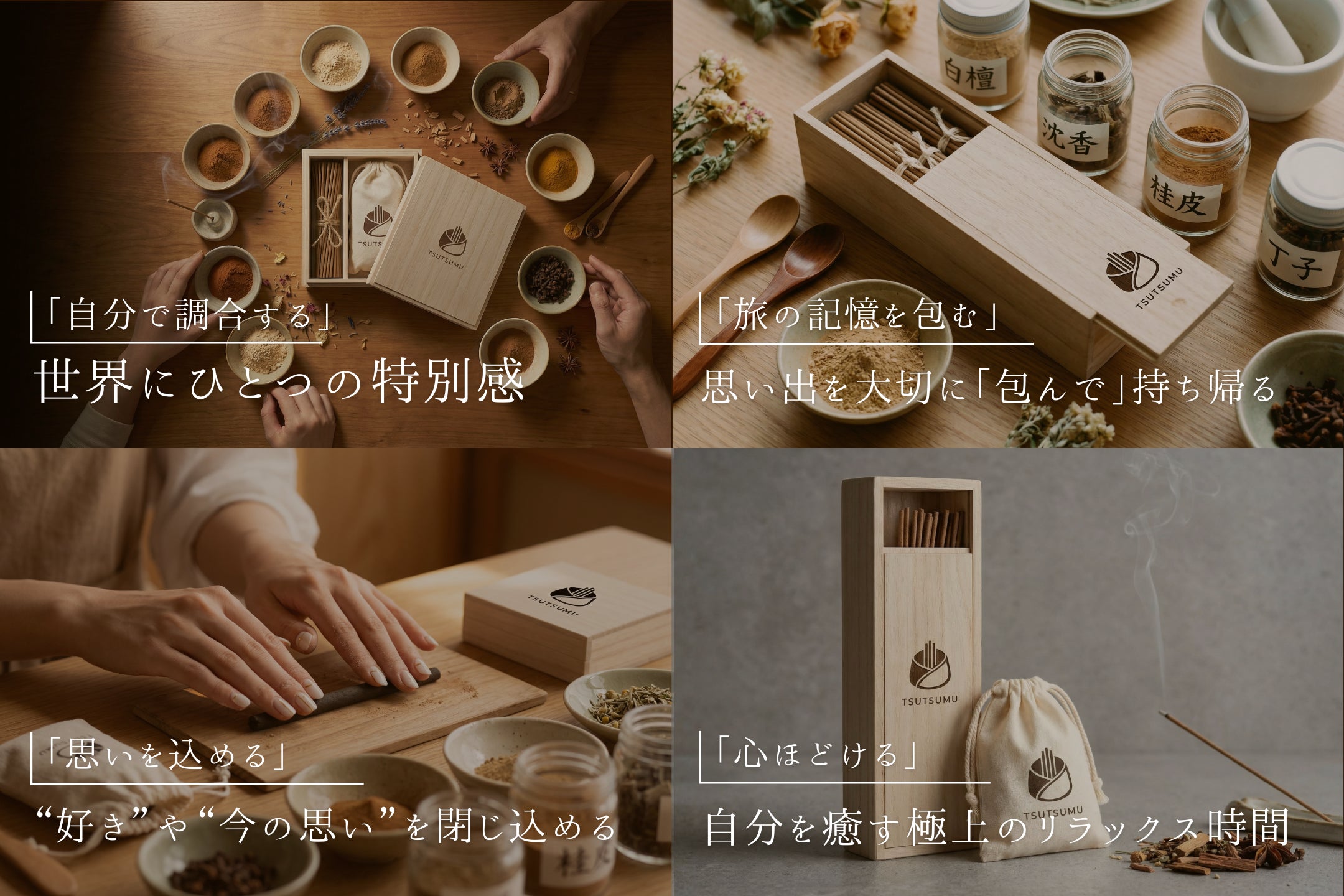 そこで行き着いたのが、「自分の思いを形にするお香作り体験」です。