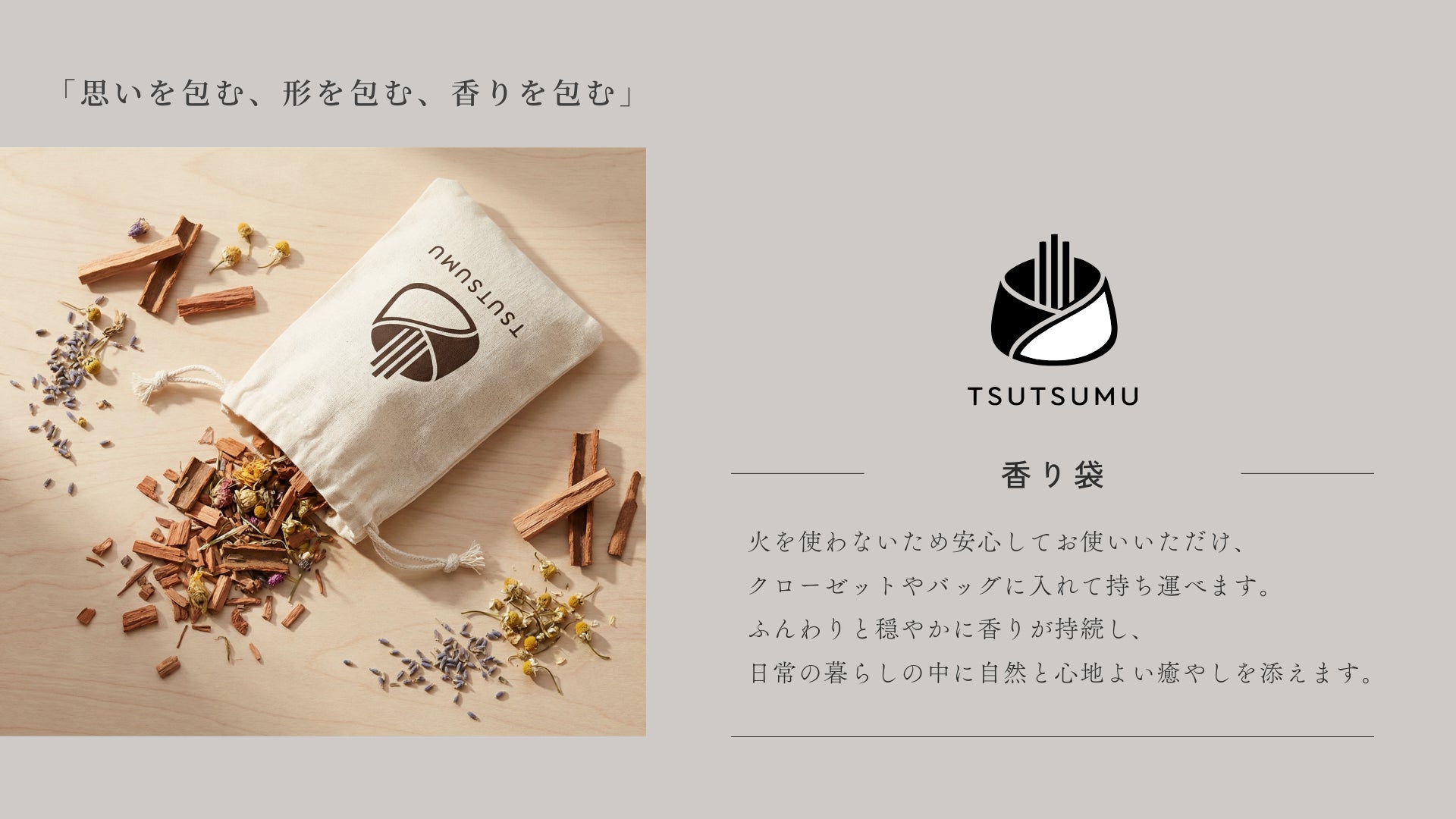 【TSUTSUMUオリジナルの匂い袋とお線香のセット】の郵送プランをご用意しています!