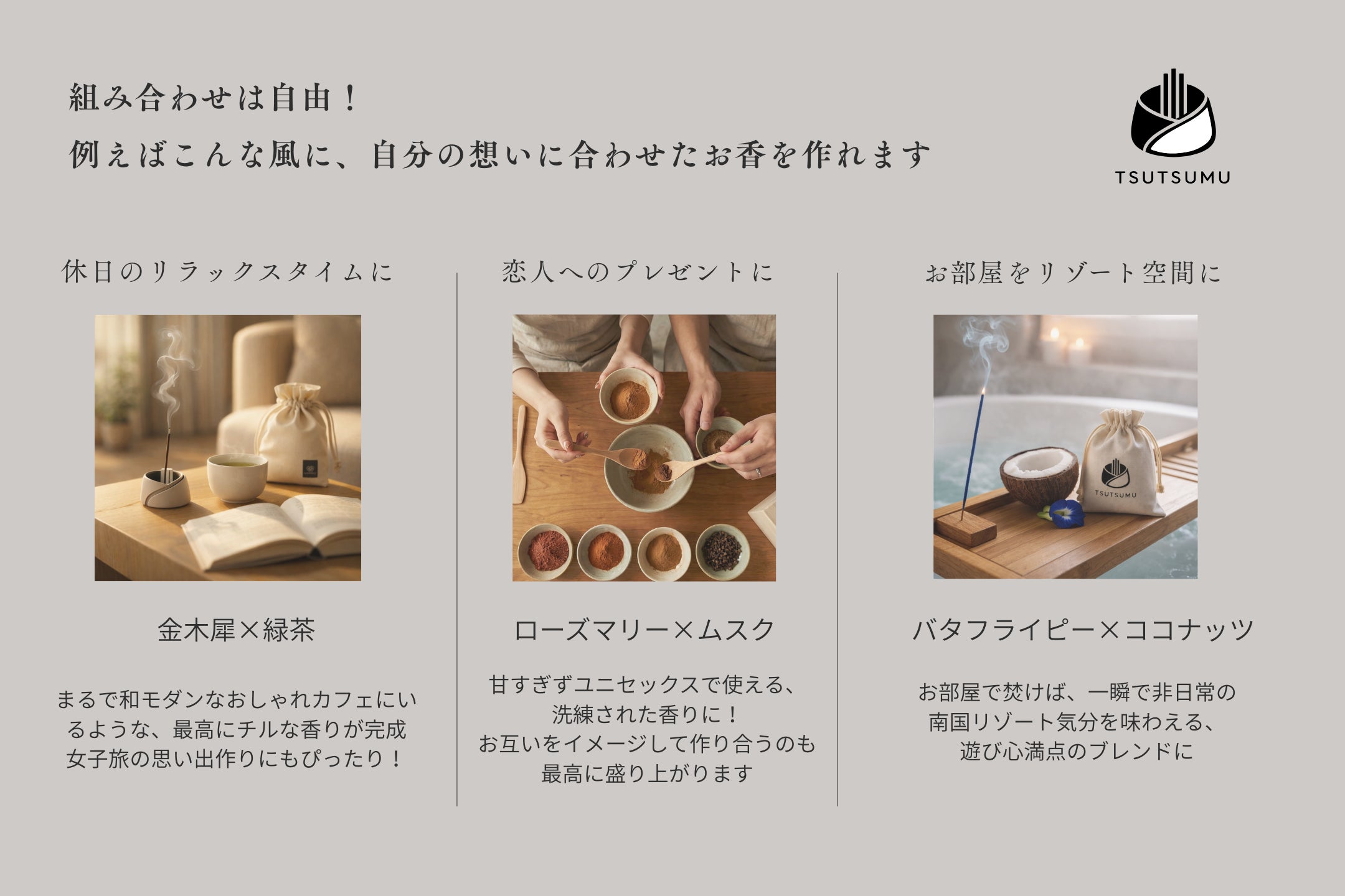 そして旅行から帰り、日常のふとした瞬間に、お香に火を灯す。煙がゆったりと広がるリラックスした時間の中で、福岡で包んだ香りを楽しみながら、思い出をゆっくりと解く。