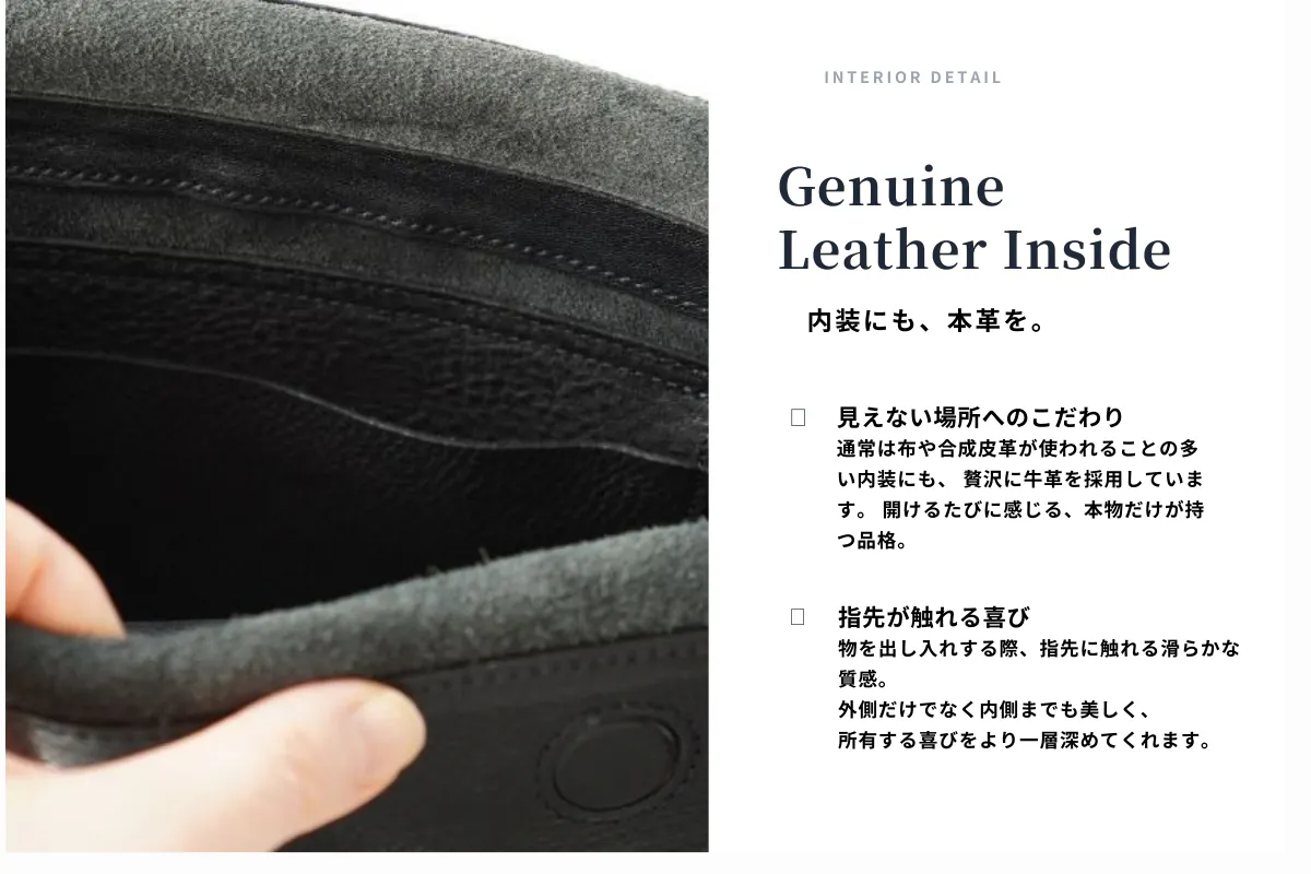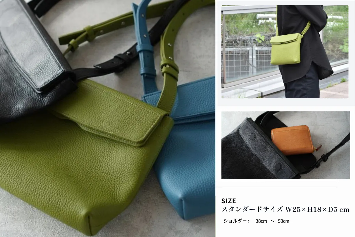 軽量で上質な国産レザーを使用し、日本人職人が一つひとつ丁寧に縫製して仕上げた本革バッグです。