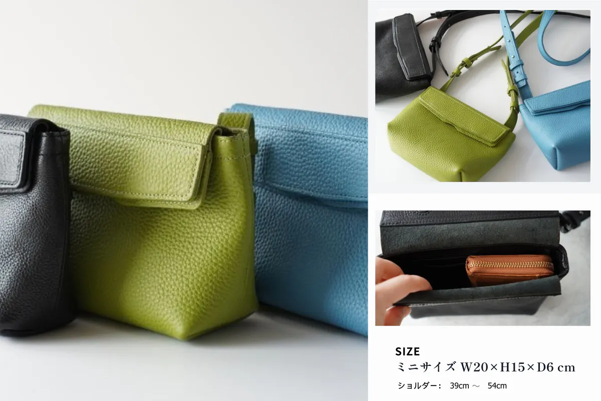 上質なイタリアンレザーを使用したスタンダードサイズのブラックと、軽量で上質な国産レザーを使用したミニサイズのグリーンを組み合わせた特別セットです。