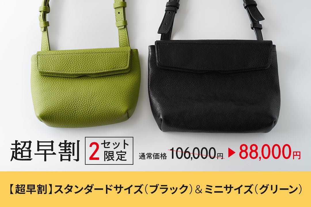 上質なイタリアンレザーを使用したスタンダードサイズのブラックと、軽量で上質な国産レザーを使用したミニサイズのグリーンを組み合わせた特別セットです。