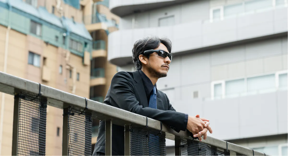 パッと見は、まるで通常のオシャレなメガネ。