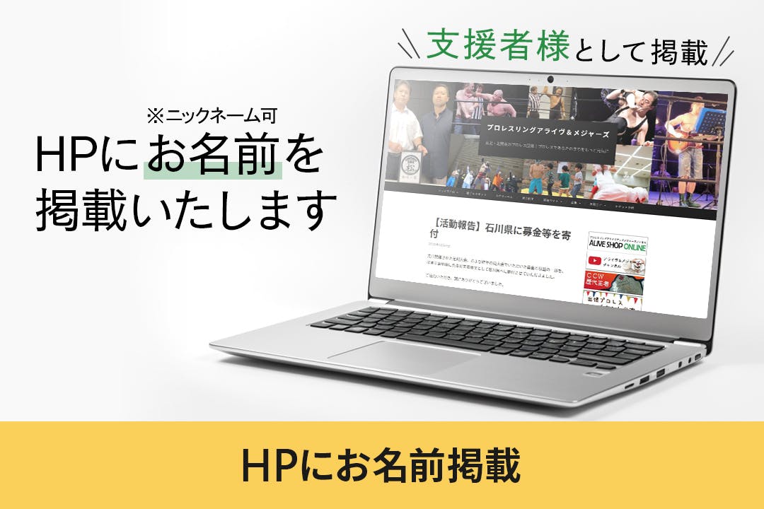 ご支援いただいた皆さまのお名前を、プロレスリングアライヴ&メジャーズ公式ホームページに掲載いたします。