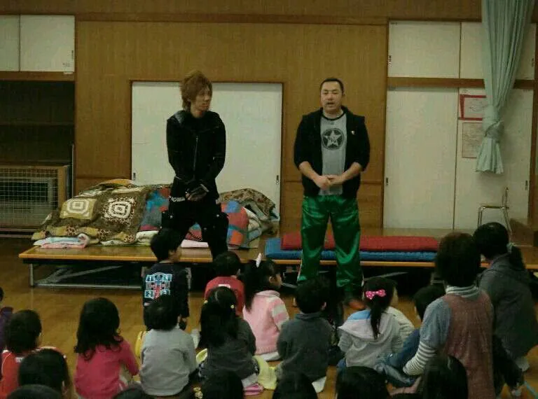 少しでも楽しい時間を過ごしてもらい心の復興に繋がればという気持ちでトークをしたり ちびっこたちと運動したり。