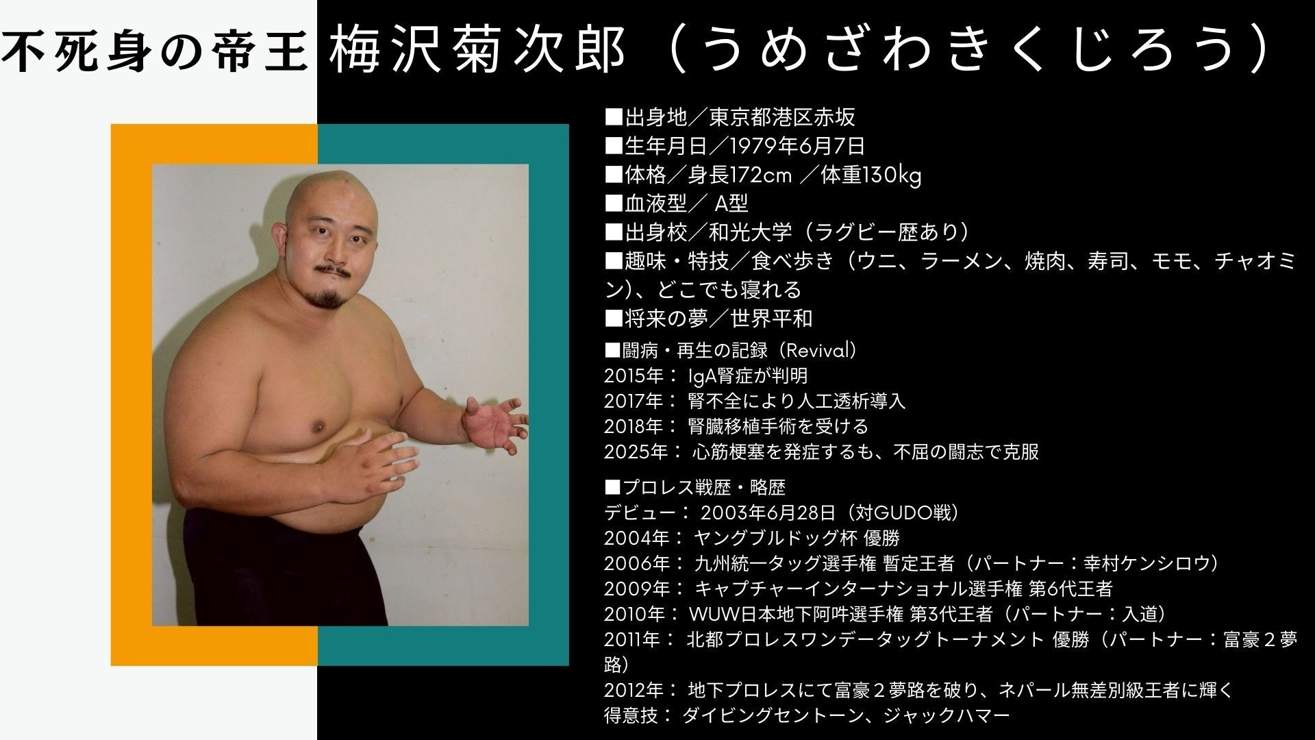 不死身の帝王、梅沢菊次郎。その復活の一歩を、ぜひ会場で見届けてください。