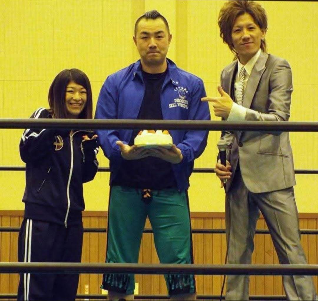 2026/04/12 09:00大流血した私を末吉さんや梅沢さんが救出してくれました。最終的には出場していただいたヒール軍を除く全選手がリングに集まっていただきました。意識朦朧なのと、ここまでの流血は初めてで頭痛がひどい中でしたが出場していただいたお礼を全選手に伝えました。いつもは陽気で楽しい はらじゅくきっど選手が泣いてくれたのは今でも鮮明に覚えています。お客様の心を動かす、というのは常ですが、参戦してくれた他団体の選手にも少しでも何か伝わったのかな、と思い嬉しくなりました。私自身はというと、予想以上に出血がひどく、撤収作業が終わる頃には止まるかな、と楽観的に考えてましたが、いくら待っても止まらず。体育館にシャワー室がありましたが、血で汚してしまうのも申し訳なかったし、シャワー自体が冷水しか出ない どインディー仕様で、冬・東北・流血・冷水コースは完全に体が終了してしまいます。選手スタッフも全員帰ってしまい、フラフラになりながら車を走らせとりあえずドラッグストアに向かいました。顔面血まみれの客(一応裂傷部分はタオルを巻いて隠してましたが)が店内に入ってきたもんですから、レジのスタッフがフリーズしてしまいました。事情を話し、通報は免れましたが、結局 買ったカットバンも無意味で、祝日だったこともありネットで検索して 休日当番医へ向かいました。見に来てくれた方々、特にプロレスを初めて見た方々には後日 どう感じたか聞いてみましたが、こんな後味の悪い終わり方をすると思わなかった、と(笑)言われました。結果としては大きな傷を負い究極のBAD ENDとなった初の凱旋試合となりましたが、これはこれで実は私の理想でもあったりするんです。というのも、最近の プロレスを見にきたら皆ハッピ~になってお家に帰りましょうムーヴがどうしても嫌いなんです。運動神経のいい お兄ちゃんたちが目にも止まらぬ動きで試合終了までハイスピードバトル、みたいなのがどうしても好きになれないんです。細マッチョの技の品評会みたいなプロレスは少なくともアライヴではやりません。私が幼少期に見たプロレス、勿論いいものを見て気分良く帰宅した日もあります。逆に 高い金を払って期待に胸ふくらませ見に行ったのに、延々と地獄を見せられる、金を払って苦痛を味わう、という理不尽を子供の頃から経験してきました。IWA JAPANなんかが良い例です。ターザン後藤選手の地獄をひたすら20分近く見せられるという これはひとつの社会勉強なわけです。あの頃の全日本女子もそうでした。しごきを越えた、これは暴行だよね 笑 というものを見て育ったわけです。見に来たからと行って、必ずしもいいものを見れると思うなよ、と。なんでもそうです。すぐに炎上を気にします。毎回毎回ぬるいハッピーエンドで全選手リングに上がって記念撮影、みたいなあれこそ本当のインチキ満載ヤラセプロレスです。よく藤原秀旺とも昔から話していました。俺らは戦ってんだから悪い結果になることもある、客が嫌な気持ちで帰る時もあるかもしれない、だけどそれが本当の戦い。精度の高いプロレスごっこをしている数多のプロレス団体とは一味違います。アライヴは媚は売りません。そこを今度アライヴを見に来てくれた方には体験してほしいと思います。花泉大会編おわり もっと見る