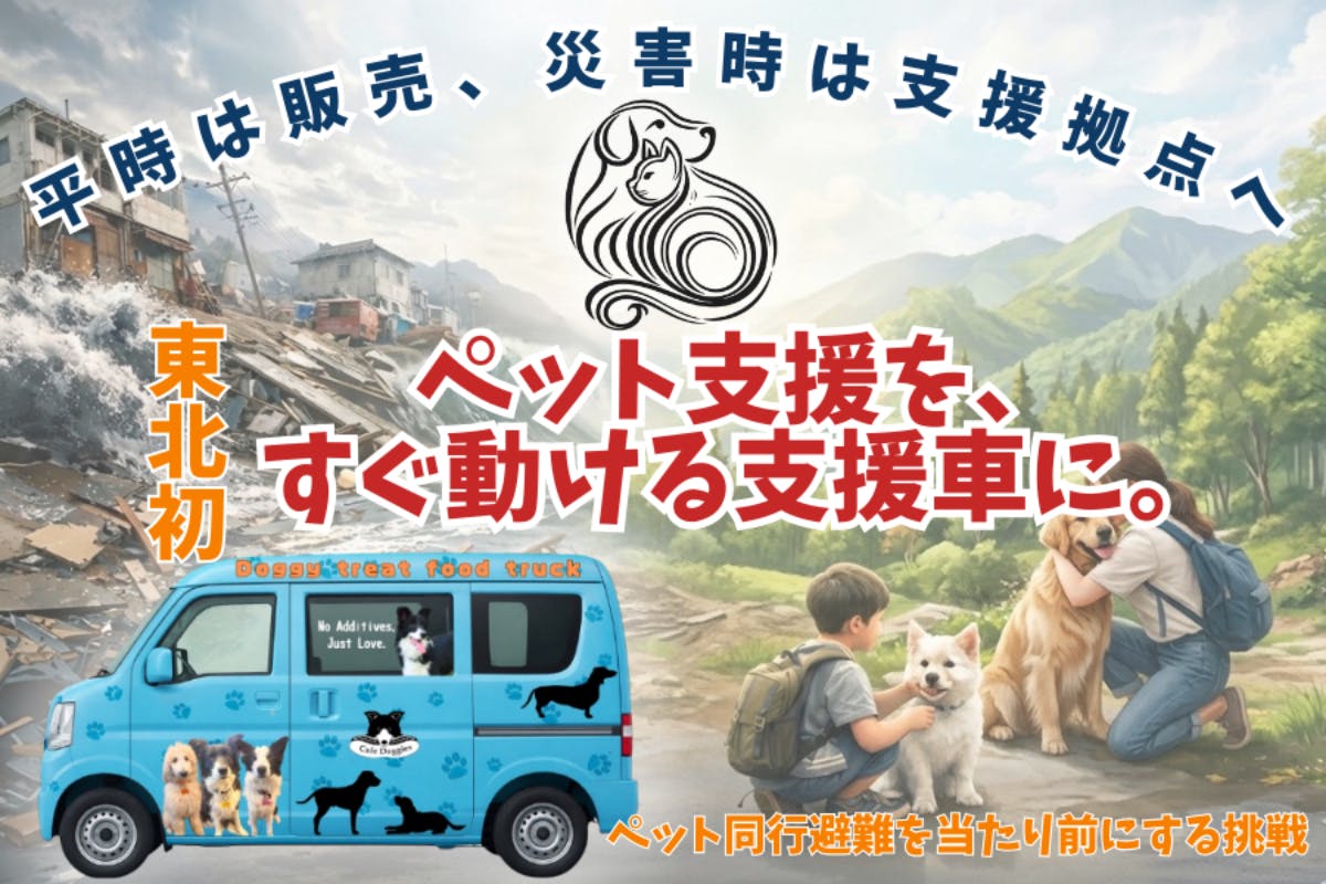 「平時はペット専用の移動販売カー、災害時はペット支援拠点へと即時転換できる車両」の導入です。