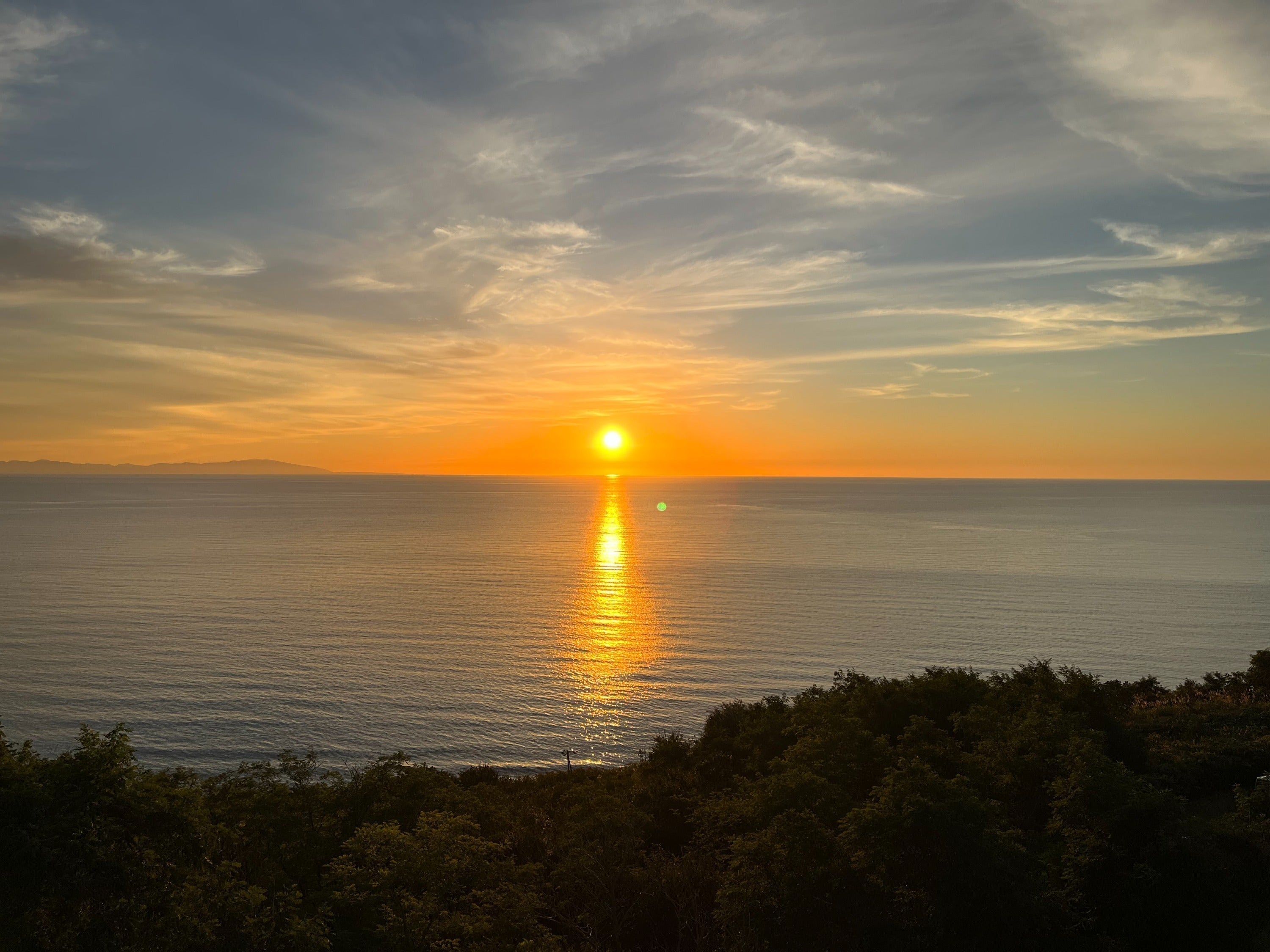 厚田展望台は、海と空が溶け合う絶景です。昼間には多くの人が訪れます。