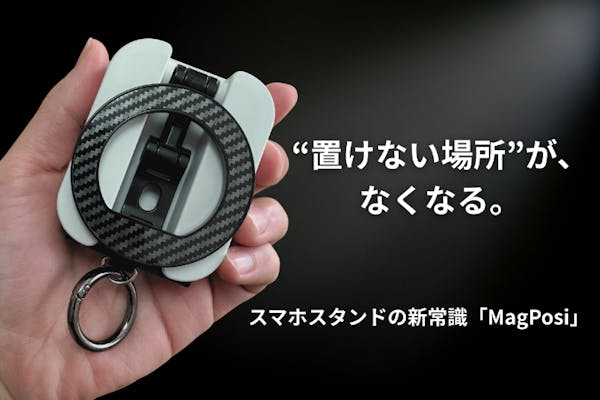 【超早割】多機能スタンド「MagPosi」×1セット 【リターン内容】 ・多機能スタンド「MagPosi」本体×1 ・メタルリング×1 ・メタルステッカー×1 ・カラビナ×1 ※ 消費税込み ※ 送料は全国一律無料 ※ 割引率は一般販売予定価格に送料を含む合計金額に対するものです。 ※デザイン・仕様は変更になる可能性もございます。ご了承ください。 ※ご注文状況、使用部材の供給状況、製造工程上の都合等により出荷時期が遅れる場合があります。