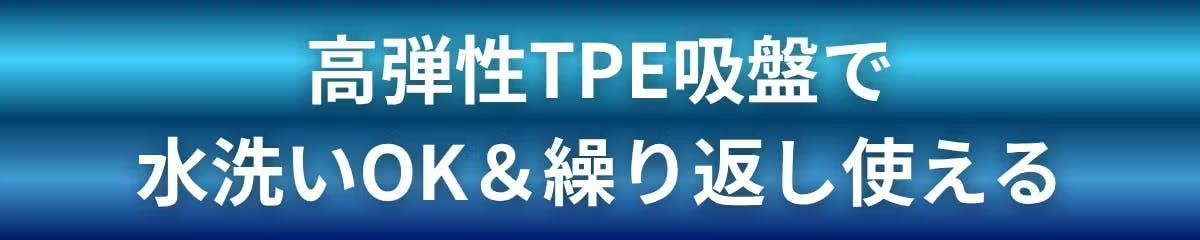 吸盤部分には高弾性TPE素材を採用し、優れた密着性と耐久性を両立。ホコリや汚れが付着して吸着力が弱くなっても、水でさっと洗い流すだけで繰り返し使用できます。粘着テープのようにベタつきが残る心配もなく、いつでも清潔に保てるのも魅力。