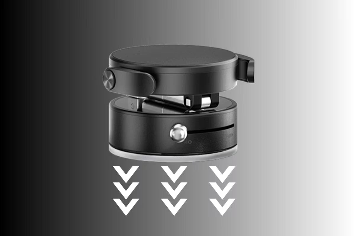 高弾性TPE素材を使用した真空増圧吸盤を採用し、レバーをONにするだけでしっかり密着。