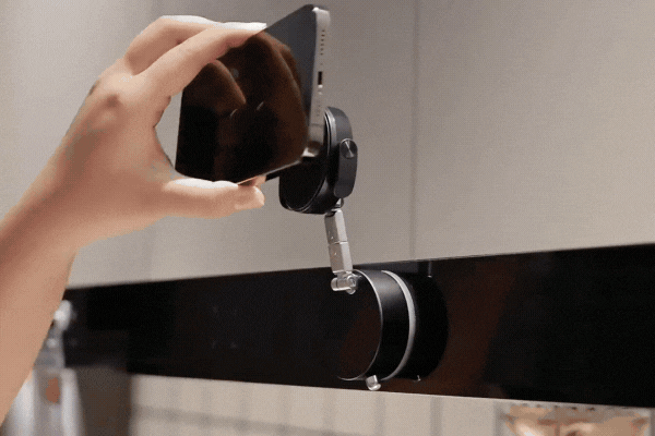 MagDockは、片手で簡単にスマホの着脱ができるストレスフリーな設計。マグネットで吸着する場合は置くだけでピタッと固定、取り外しも片手でスッと完了。
