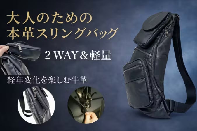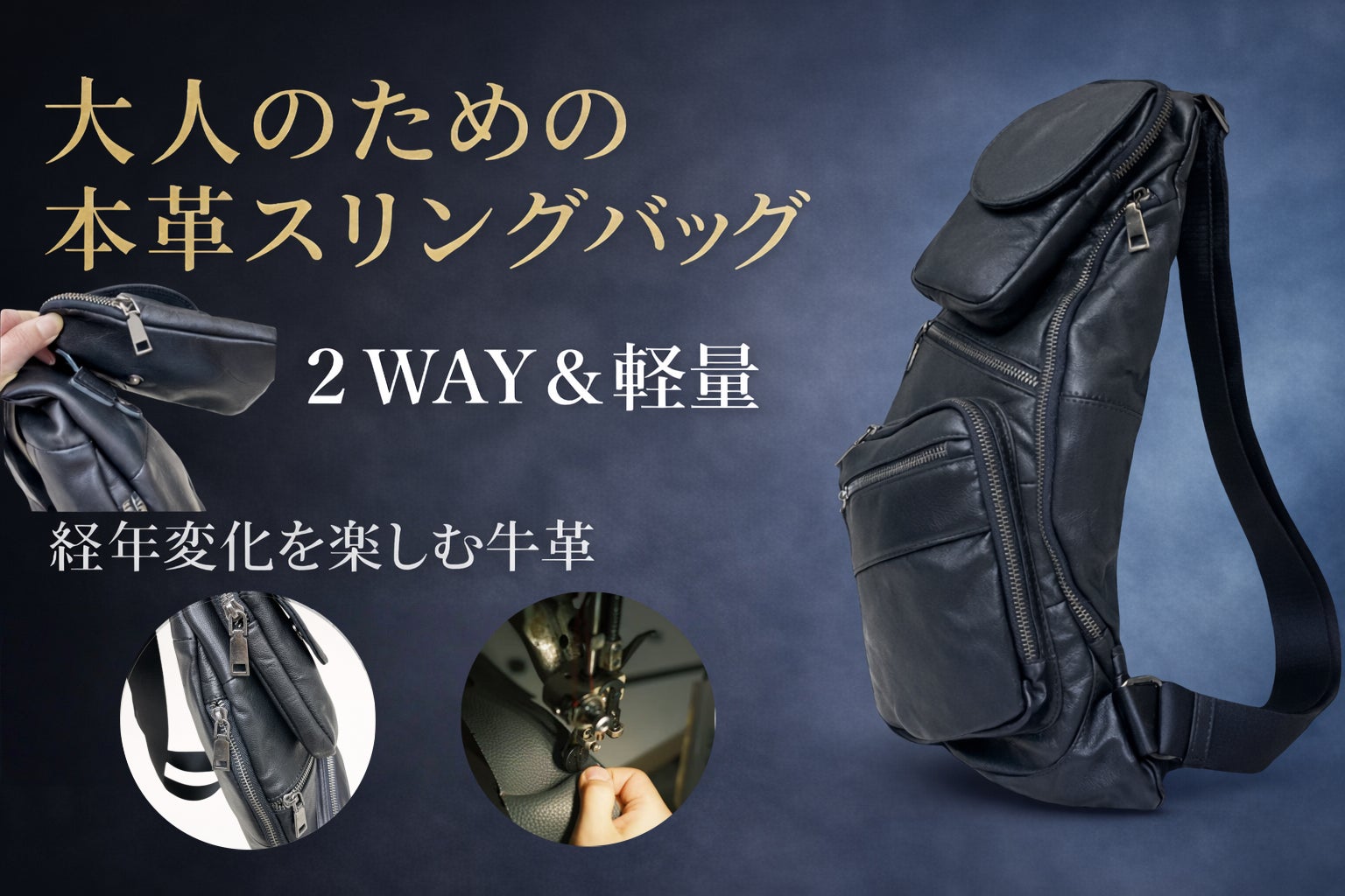 「どんなシーンでも活躍する、収納力抜群のレザー・スリングバッグ。