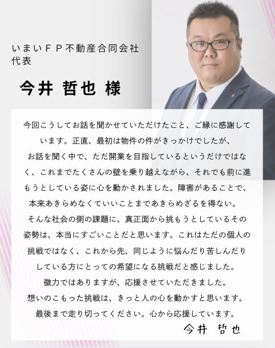 2026/04/20 14:48先日、私たちの取り組みについて新聞社の取材を受けました。日々の活動や、このプロジェクトに込めた想いを丁寧に聞いていただく貴重な機会となりました。今回改めて言葉にすることで、この活動の意味や大切さを再確認することができました。取材をきっかけに、より多くの方にこの取り組みが届いていくことを願っています。そして、その広がりが新たな理解や支援につながっていくよう、これからも一歩ずつ進んでいきます。中日新聞さんありがとうございました。 もっと見る