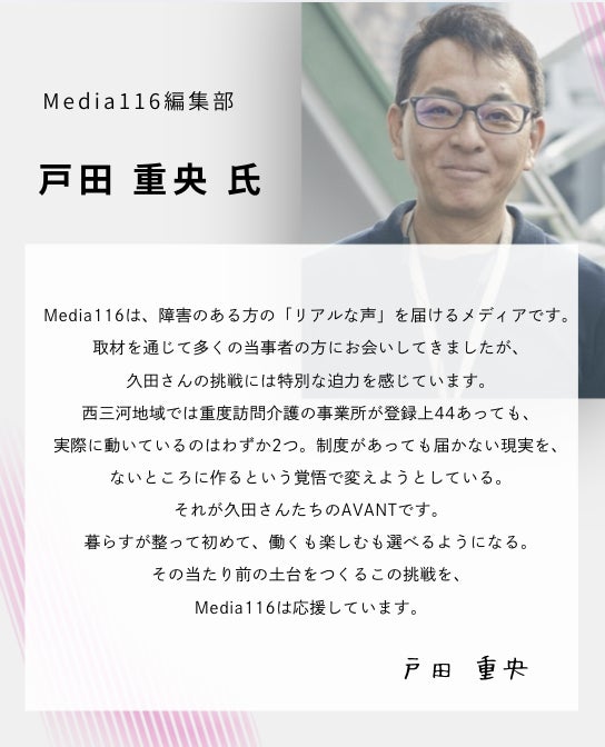 支援される側として待つのではなく、仕組みをつくる側に回る。