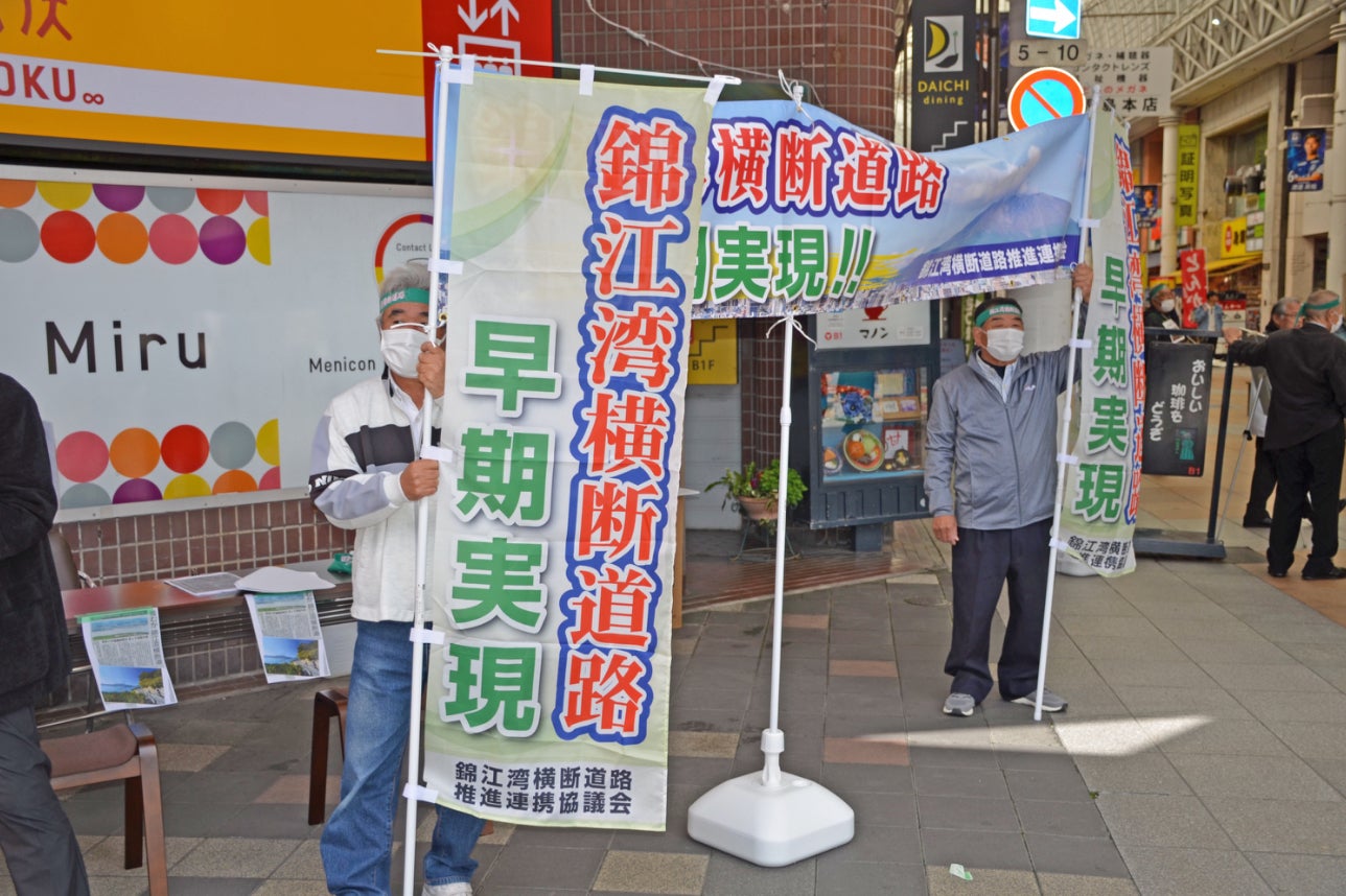 本協議会の活動としては、地域の行事に参加したり、天文館での署名活動やこの道路の必要性など、多くの皆様に訴えかけております。