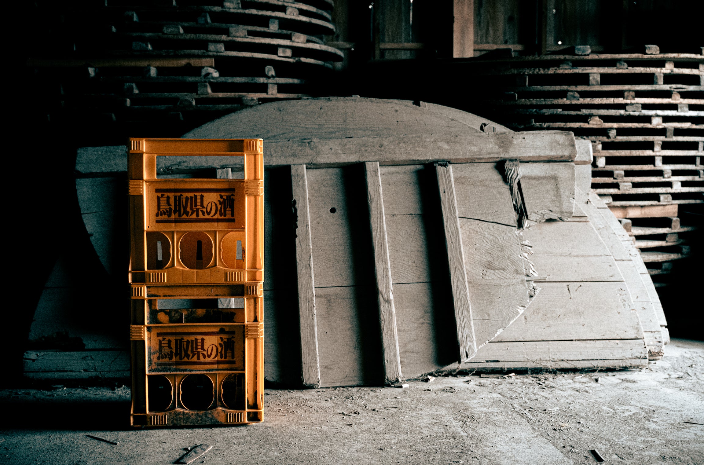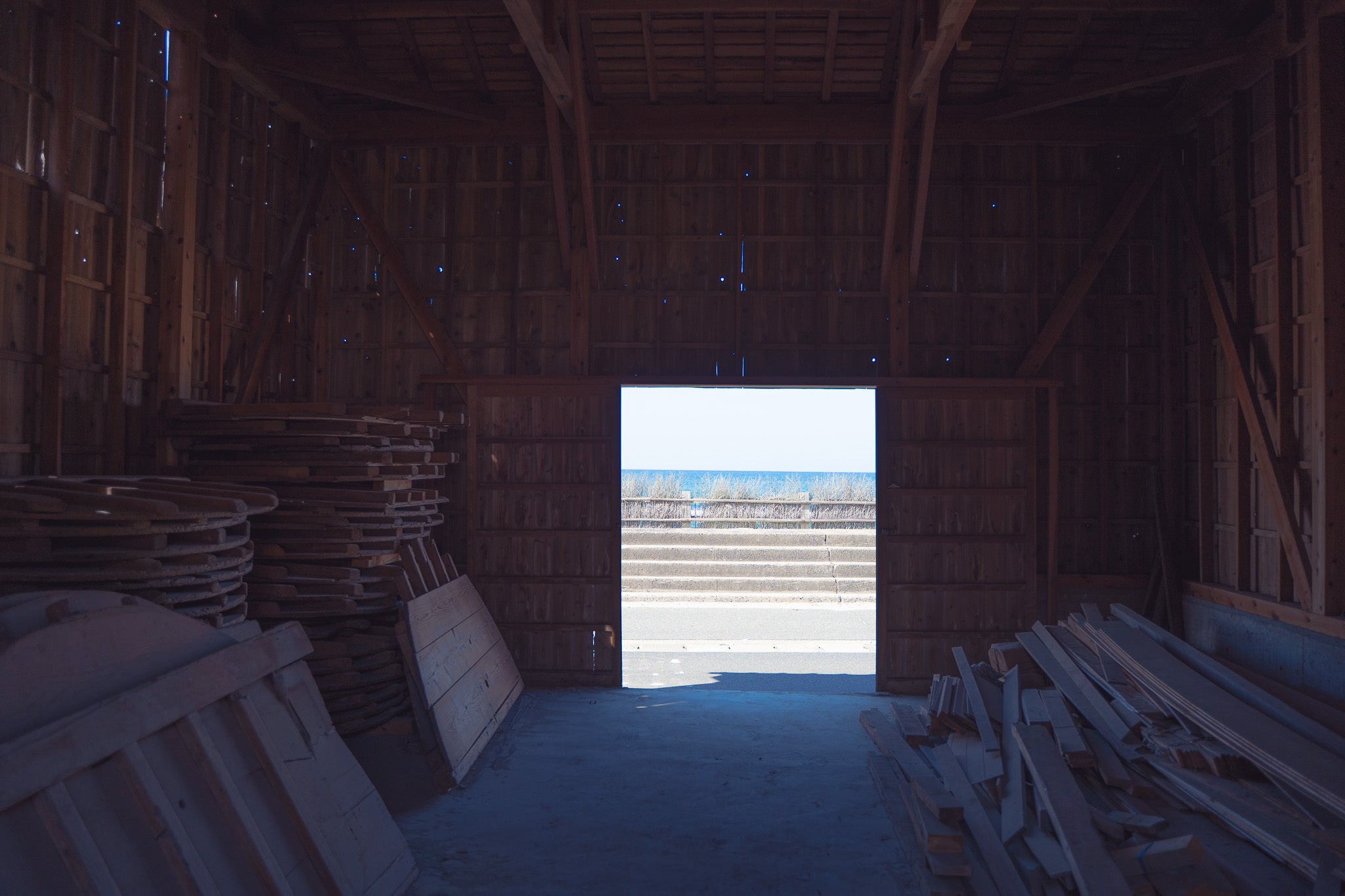 鳥取県琴浦町・八橋海岸。潮風にさらされ、グレーに褪せた外壁の小屋。かつては酒蔵の馬車小屋として、街に活気を運んでいた場所です。