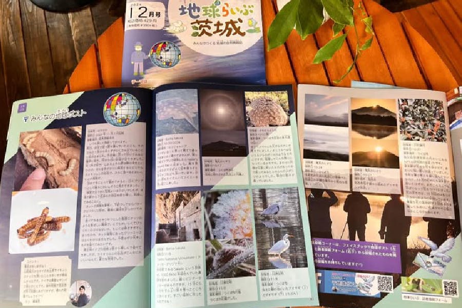 地球レーベルでは、年間を通してさまざまな自然観察会を企画し、その様子を記事にまとめ「地球らいぶ・茨城」で発信しています。紙面化することで誰もが観察会の内容を共有することができ、また参加者にとっても参加した記録となり、雑誌だけの発刊、自然観察会のみの実施、というだけに留まらず、自然科学教育普及としてよりよい相乗効果が生まれました。