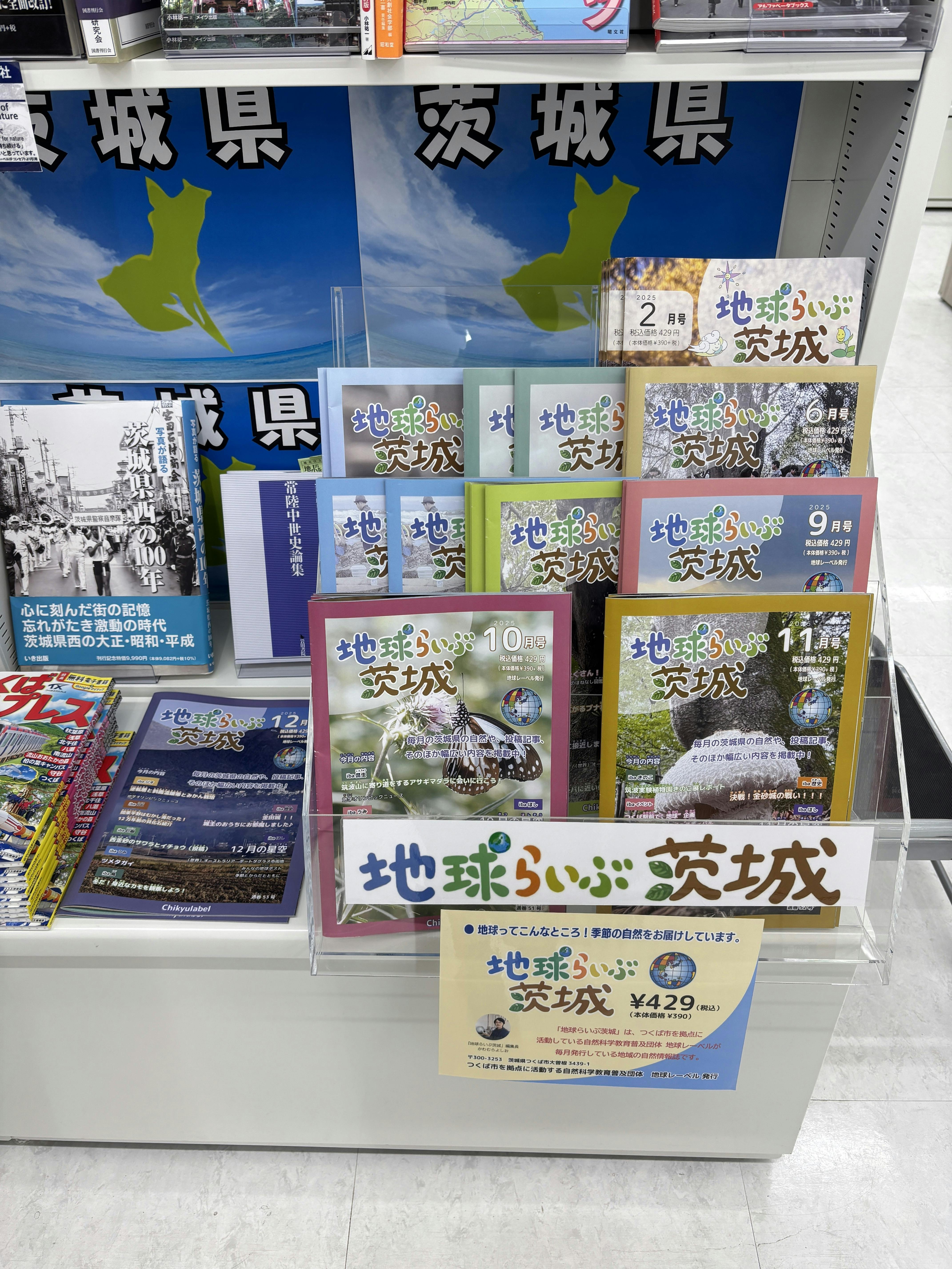 土浦市の公立の小中学校の他、茨城県立図書館、つくば市立図書館、筑西市中央図書館、土浦市立図書館など50ヶ所ほどに毎月無償にて「地球らいぶ・茨城」を配架させていただきました。