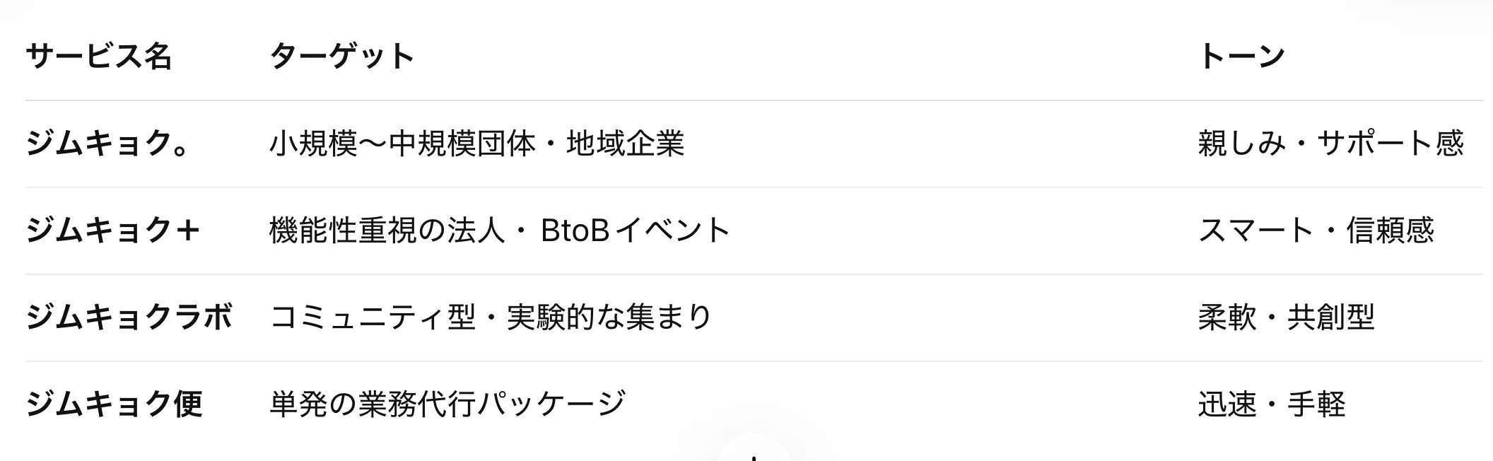 このプロジェクトへのご支援をいただいた皆様には、ジムキョク。の初回利用時の割引や、カスタマイズされたコンサルティング、さらには共創型イベント企画への優先参画など、段階的な価値をお返しします。