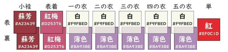 重色目(かさねいろめ):表地と裏地の配色データ(60種)
