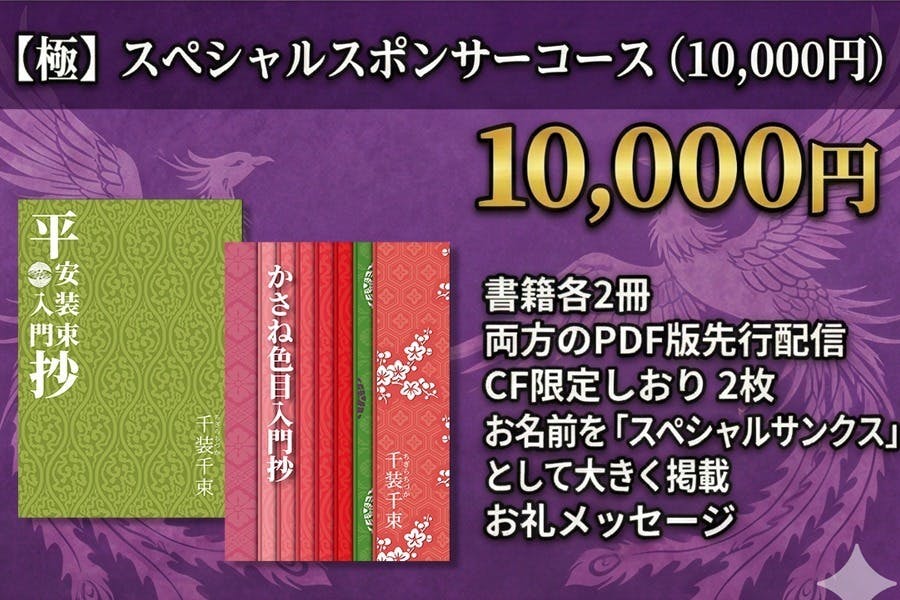 この本を通じて、皆様の創作活動や、平安文化への愛がより鮮やかなものになることを願っています。 皆様の温かいご支援を、心よりお待ちしております。