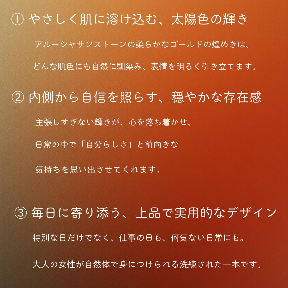 柔らかな太陽のような輝きは、主張しすぎることなく、日常の装いにも自然に溶け込みます。