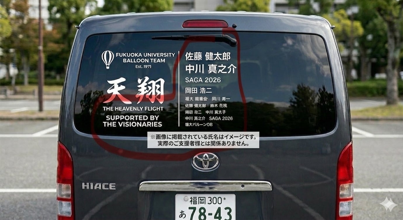 支援してくださった皆さんが大会会場で、福岡大学熱気球サークルのハイエースを見かけたとき、少しだけ思い出してもらえたら嬉しいです。