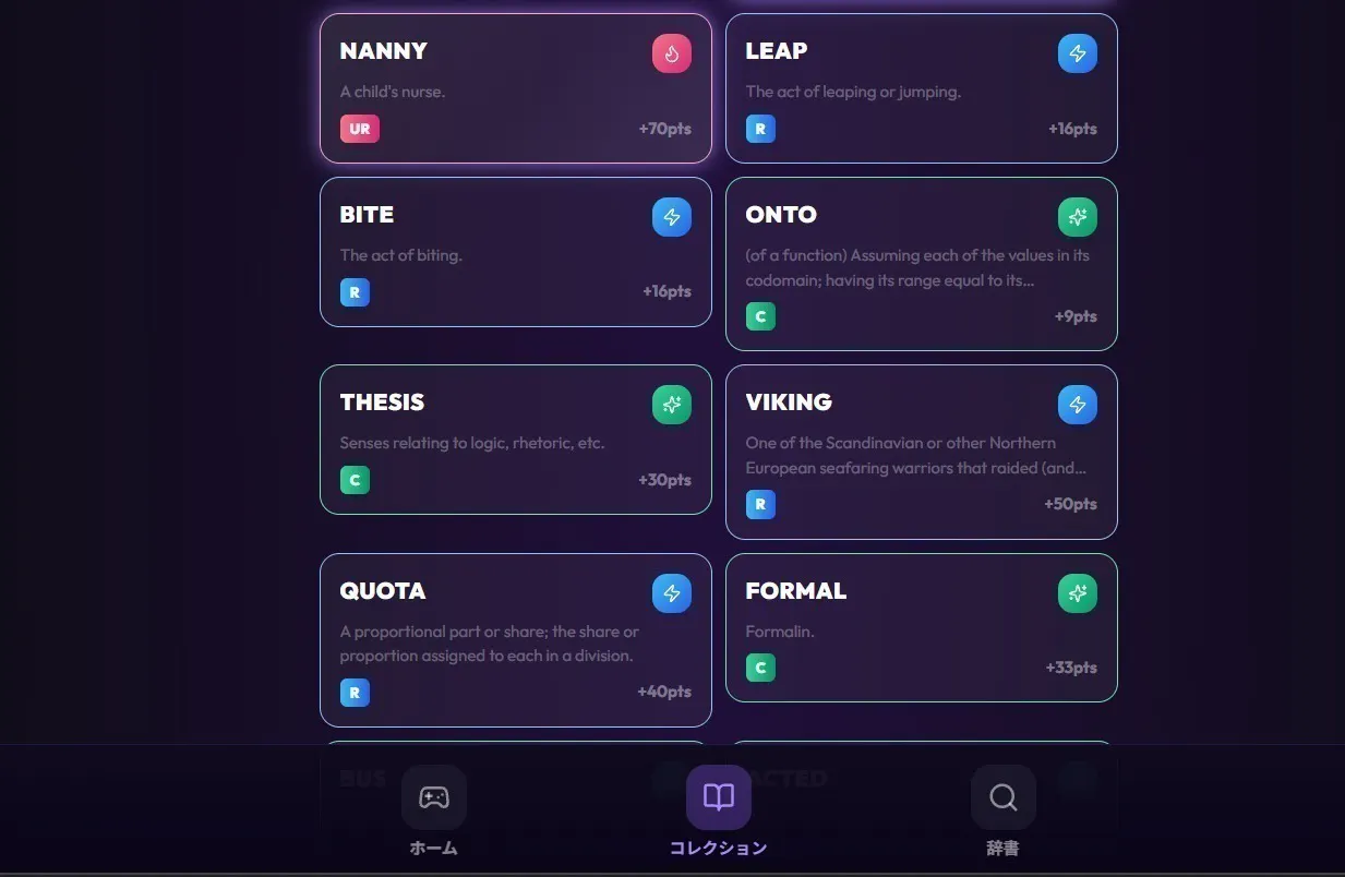 英語学習の課題は明確です。多くの人が【暗記はつらい】という固定観念を持ったままです。でも、ゲームの世界では、新しい単語と出会い、コレクションしていくことが【楽しい】に変わります。私たちがつくりたいのは、その体験です。単語帳ではなくコレクション、単語暗記ではなく新しい単語との出会いへ。学習が苦しみではなく喜びになるアプリです。