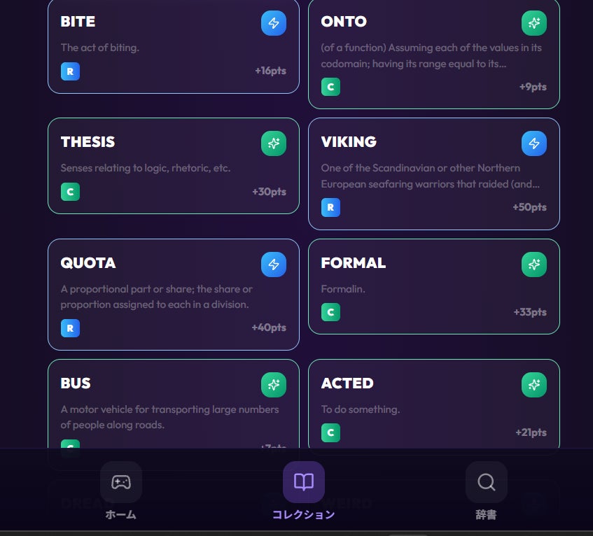 英語学習の課題は明確です。多くの人が【暗記はつらい】という固定観念を持ったままです。でも、ゲームの世界では、新しい単語と出会い、コレクションしていくことが【楽しい】に変わります。私たちがつくりたいのは、その体験です。単語帳ではなくコレクション、単語暗記ではなく新しい単語との出会いへ。学習が苦しみではなく喜びになるアプリです。