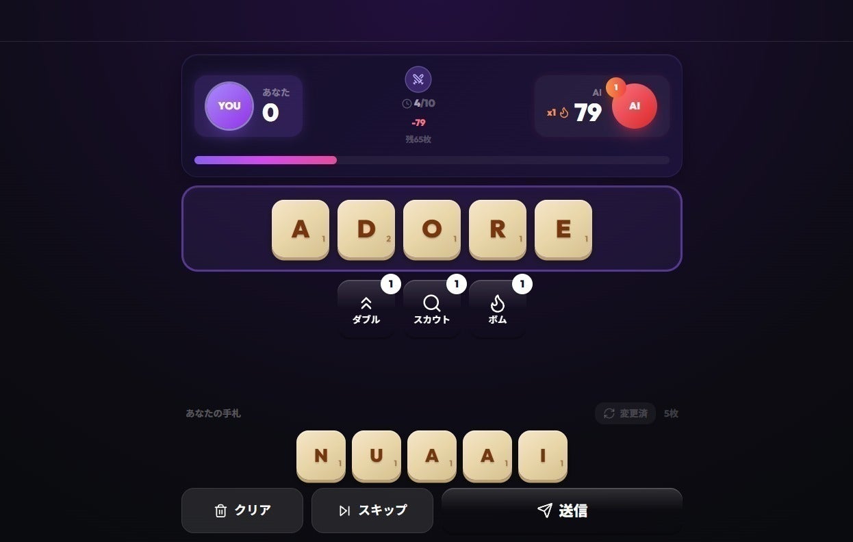 このアプリは、言葉遊びの面白さを大切にしています。スクラブルのようなゲーム性を取り入れることで、ユーザーは自然と英単語と向き合い、意味や使い方を身体で覚えていきます。ゲームをしていたら、いつの間にか語彙が増えている。そういう体験を目指しています。さらに、よりゲーム性を面白くするギミックやストーリーモードなども実装予定です。