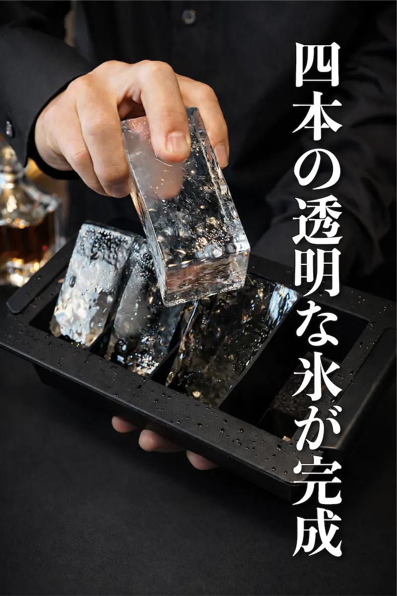 A:はい。水を入れて、冷凍庫で24時間放置するだけで透明な氷が4本出来上がります。