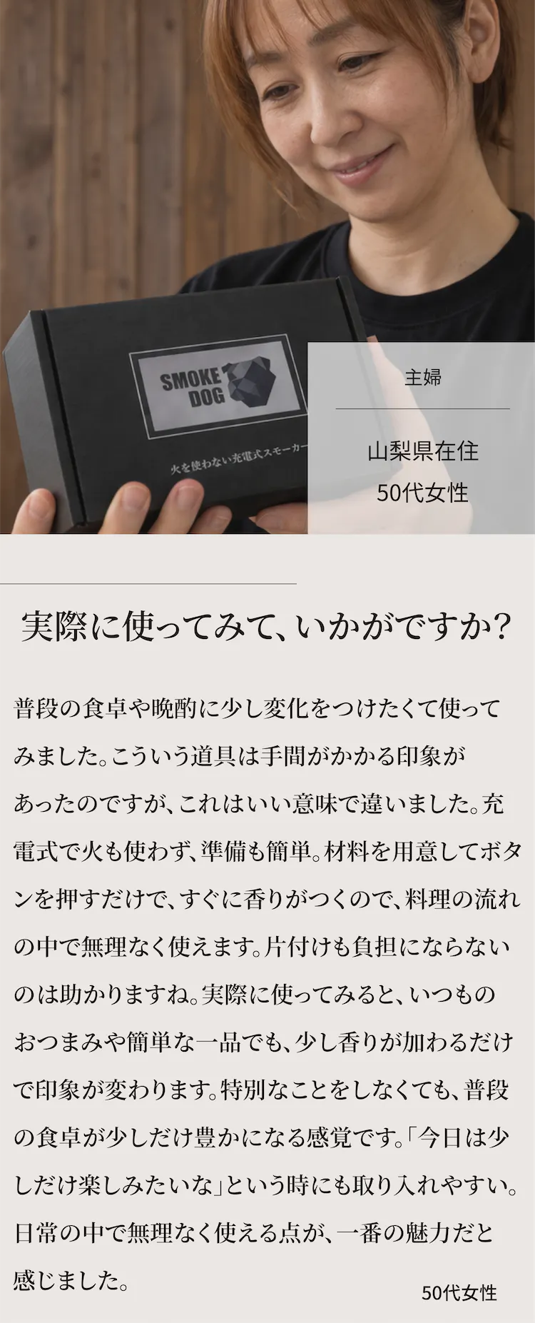 2026/03/24 21:06こんにちは!MAGIC BARRELの美希です!本日で販売開始から4日目となりましたが、すでに支援者様が1,000人を突破しました!たくさんのご支援をいただき、本当にありがとうございます。スタッフ一同、心より感謝しております。本日は、購入を検討されている方からよくいただくご質問にお答えします。Q:火は使いますか?室内でも安全ですか?A:火やバーナーは不要で、Type-C充電で使用できるため室内でもお使いいただけます。このおつまみスモーカーは、火やガスバーナーを使わない設計になっており、USB Type-Cで充電して使用することができます。そのため、コンロや炭などを準備する必要がなく、手軽にスモークを楽しめるのが特徴です。また、火を使わないため、キッチンやリビングなど室内でも使用しやすい仕様になっています。食事の前におつまみを軽くスモークしたり、チーズやナッツ、ベーコンなどに香りを付けたりと、手軽に“燻製の香り”を楽しめます。「燻製は難しそう」と思っていた方でも、気軽にスモーク体験ができるのがこの商品の魅力です。ぜひご自宅で、いつものおつまみをワンランク上の味わいにしてみてください。大好評のおつまみスモーカーはこちらからチェック↓↓https://camp-fire.jp/projects/931832/view もっと見る