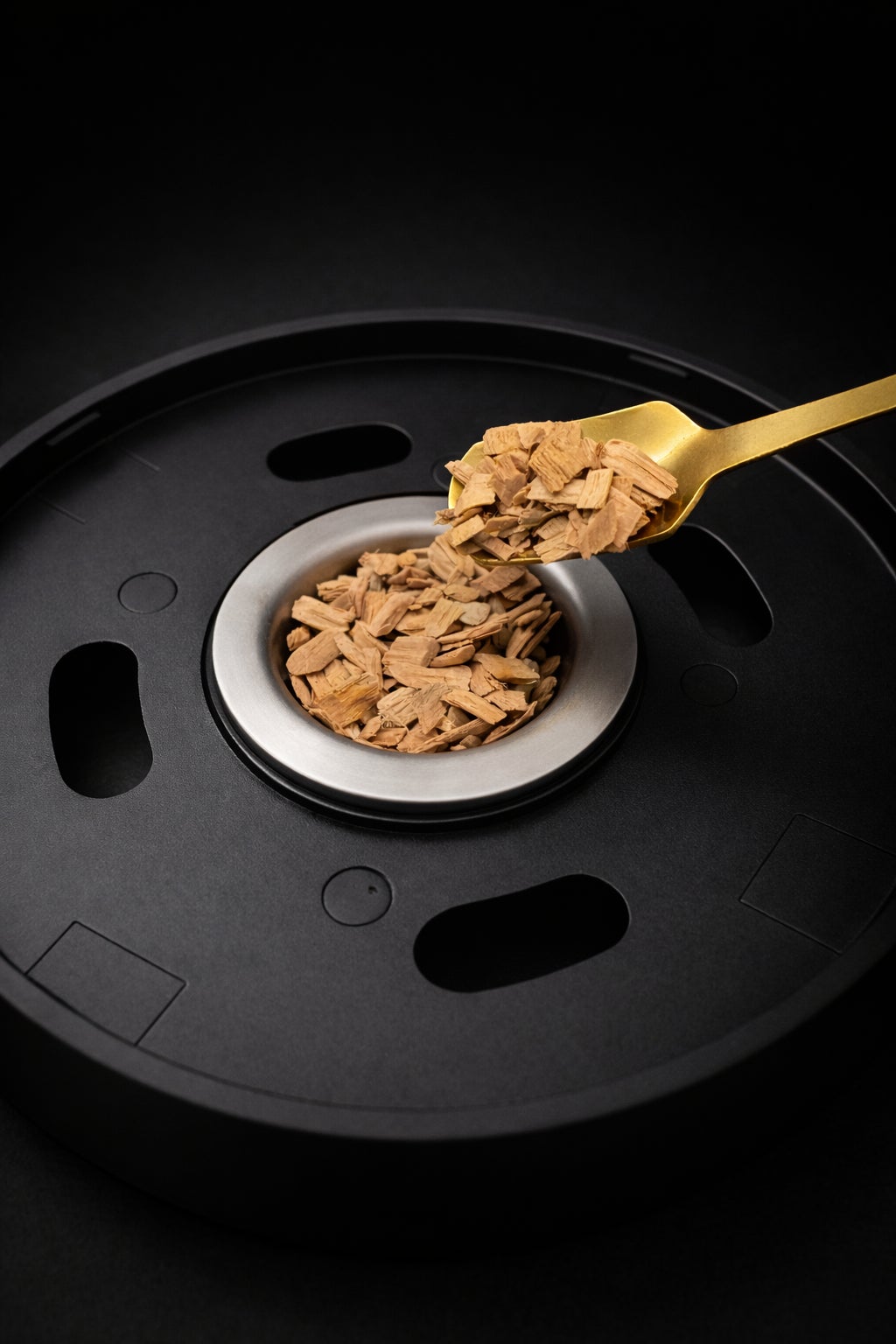 A. チップが付属しているセットがあります。りんご、チェリー、オーク、ブナなど全12種類をご用意しており、各チップ約45回の燻製ができます。