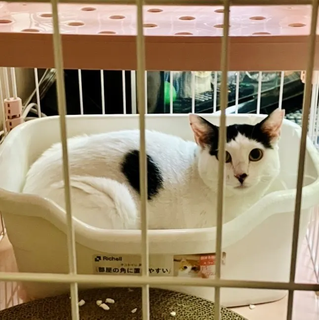家に来たばかりの頃は、ゲージの中でしばらく隠れていました。