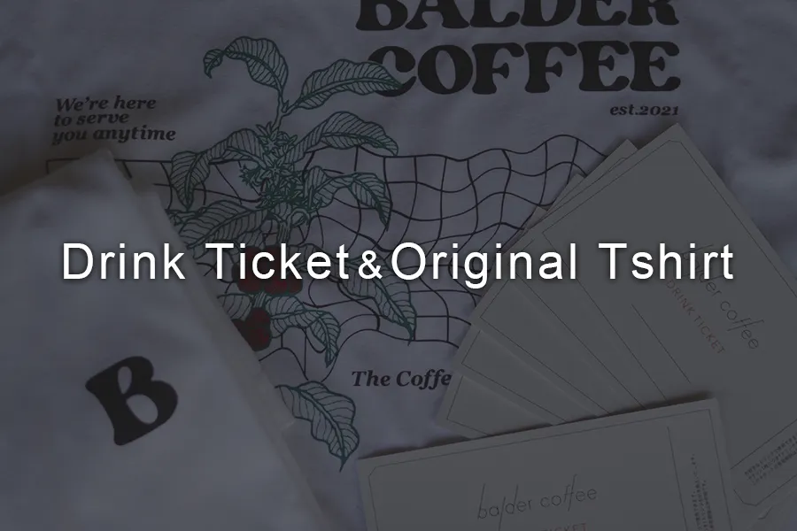 ドリンクチケット&Tシャツ ・ドリンクチケット×10 ※balder coffee全店舗使用可 ・オリジナルTシャツ ¥5,000- |