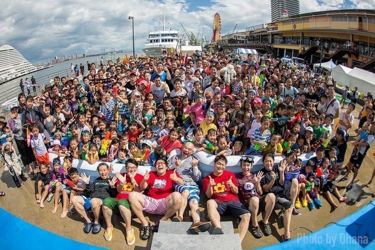海水と宮水を使い、子供用プールにためて水鉄砲や桶などで水を掛け合います。さらに、水遊びだけでなく、神戸を代表するエンターテインメントが楽しめます!