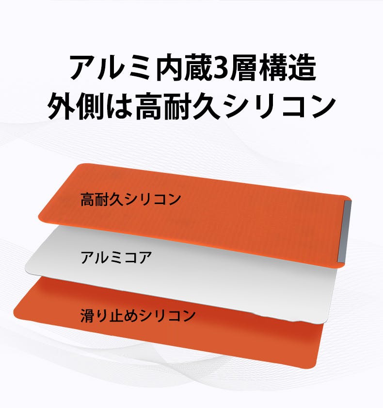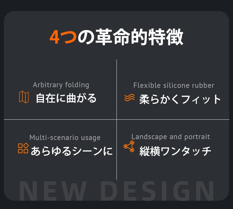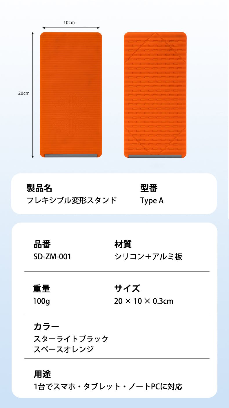 表面に柔軟なシリコン素材を採用しながら、内部にアルミコアを内蔵した構造です。しなやかに曲がる扱いやすさと、デバイスをしっかり支える安定性を両立しています。