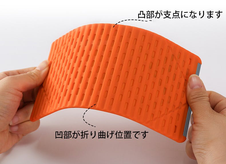 凹凸構造によって、自然と最適な支点と折り曲げ位置が決まる設計になっています。