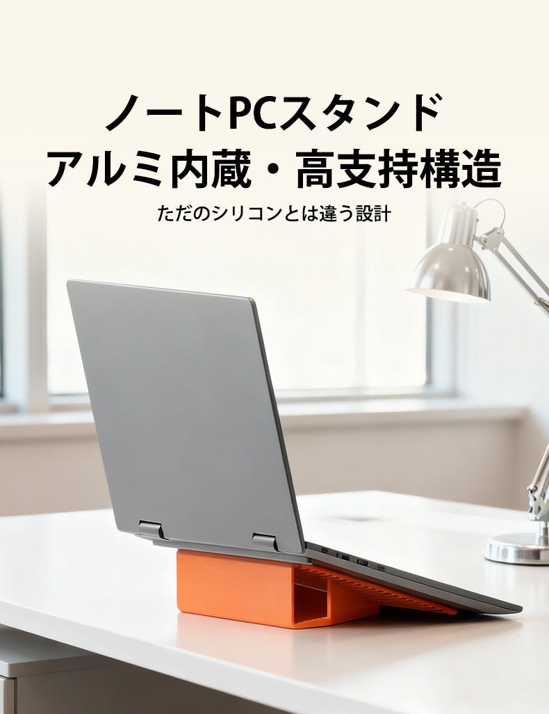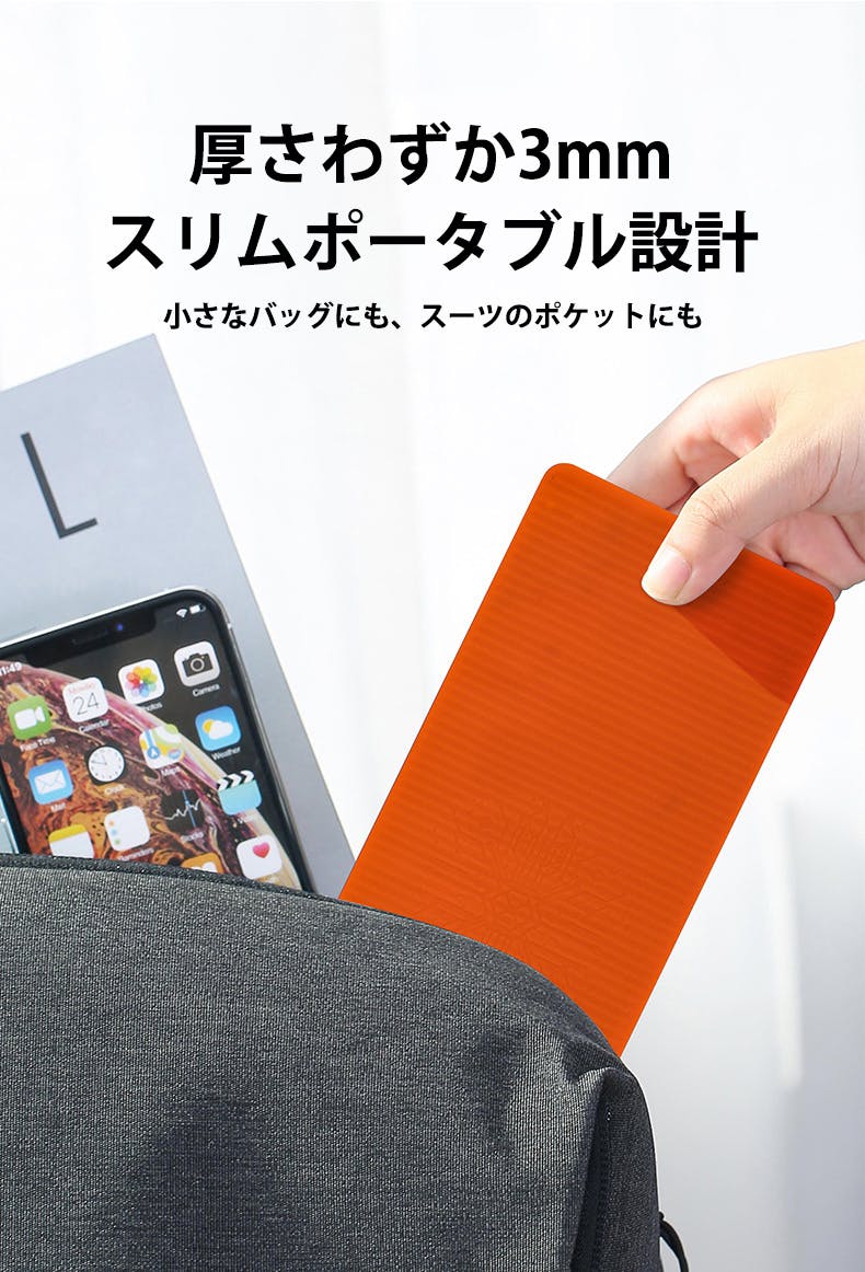 厚さ約0.3cm・重さ約100gの薄型軽量設計で、バッグやポケットにもすっきり収まります。かさばるスタンドを持ち歩く必要がなくなり、外出先でもすぐに作業環境を整えることができます。